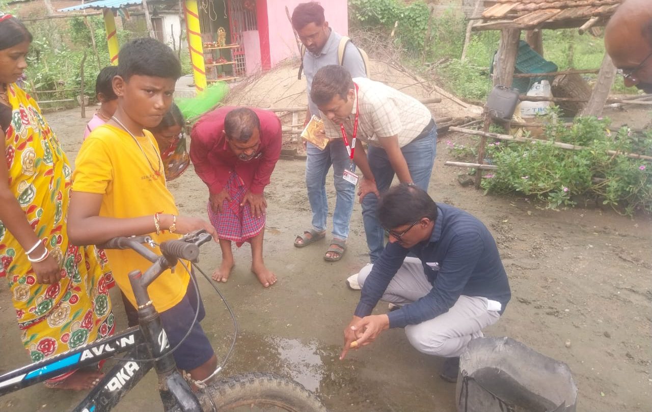 Dr. Pratap Shinde inspecting the mosquito source in a village.