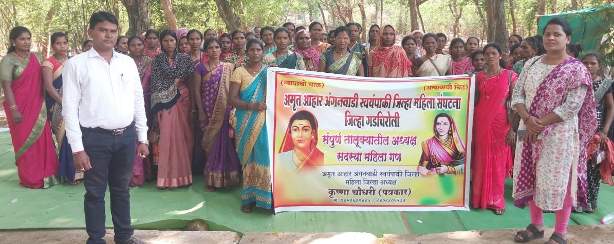Gadchiroli April 19 (District Correspondent) Anganwadi Cooks serving with Dr. APJ Abdul Kalam, Amrit Aahar Yojna in the district staged demonstrations in front of the Zilla Parishad here on Thursday to press the demand to hike their honorarium to Rs. 20,000 per month.