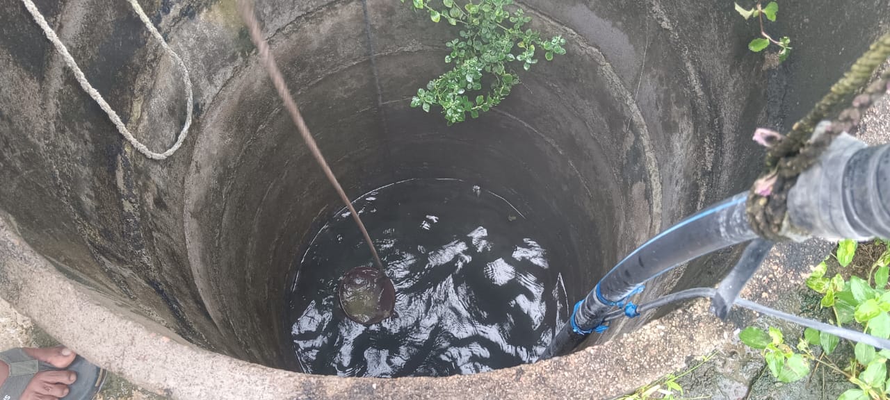 On September 8, after receiving information that hot water was coming from the well of one Satyana Malayya Katku, a team of the Rural Water Supply Department conducted an on-site inspection. The well in question is about 20 years old and has a diameter of 1.30 meters and a depth of 7.80 meters. The silt of this well was removed six months ago. During the inspection, white particles were found in the well water and a white layer was seen on the submersible pump. When a geological study of the area was done, it was found that limestone (limestone – calcium carbonate) rock was present there.