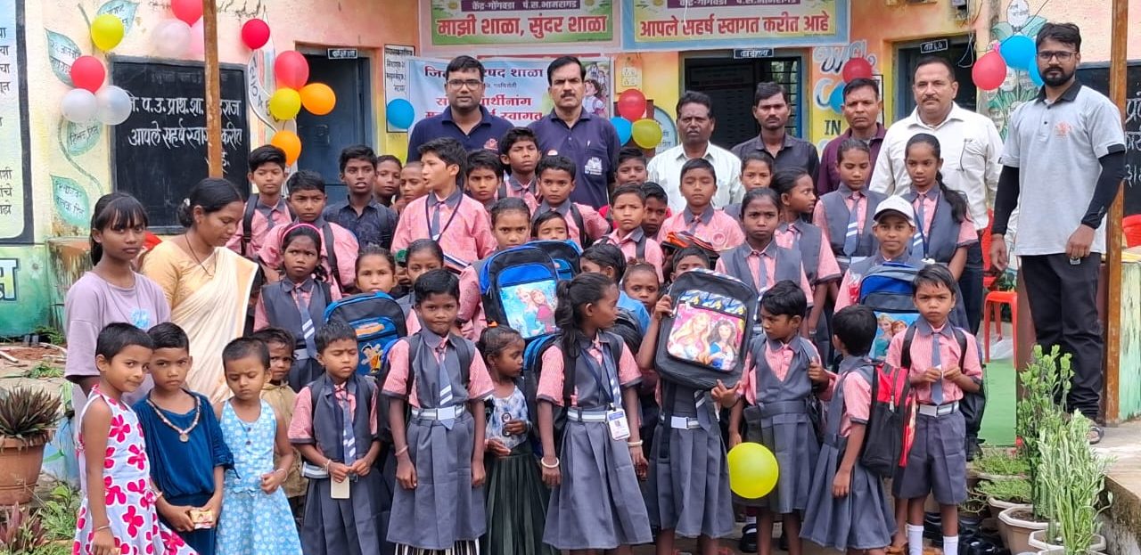 Gadchiroli June 25 (District Correspondent) Jan Sangharsh Samiti, a social organization from Nagpur celebrated the first day of school with enthusiasm with the students at Zilla Parishad School of village Dhodraj in Bhamragad taluka.