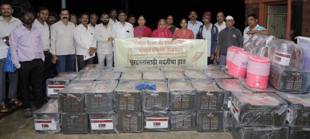 As of September 1, a total of 2,546 crates packed in 12 trucks have been dispatched from Nagpur to Patan taluka in Satara, ensuring that relief material reaches the flood-hit regions swiftly. The CSR team from Lloyds Metals at Konsari is working hand-in-hand with the local administration and officials in Satara district to ensure timely distribution and delivery of the relief material to the affected people.