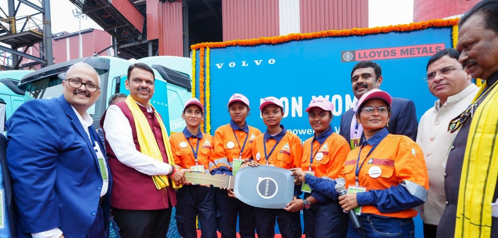 Gadchiroli July 25 (District Correspondent) Chief Minister Devendra Fadnavis, flagged off the first batch of Iron-Ore Pellet Load on nine Volvo FM 420 LNG trucks as part of Lloyds Metals & Energy Ltd. (LMEL) vision of transitioning to low-emission logistics in mineral transportation, and launched the ‘Iron Women’ initiative undertaken by LMEL with Volvo Trucks India.