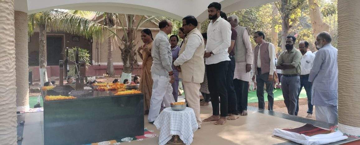 The prayers were recited and everyone paid their respects by offering flowers at the memorial of Thakurdas Ji. Thakurdas Bang’s eldest son Ashok Bang and his family Dr. Abhay Bang, Dr. Rani Bang and their family were present at the program. Ashok Bang expressed his thoughts on this occasion and revived the memories of his late father.