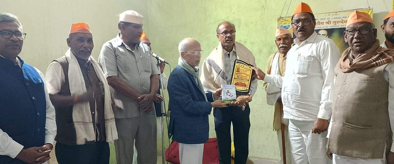 Mr. Patle was presented a shawl, memento and Gramgeeta at the hands of Dr. shivnath Kumbhare, district President of Gurudeo Sewa Mandal. The Vth standard student of the school Ms. Ravi Naitam was also felicitated on the occasion for her speech on life education and Tukdoji Maharaj.