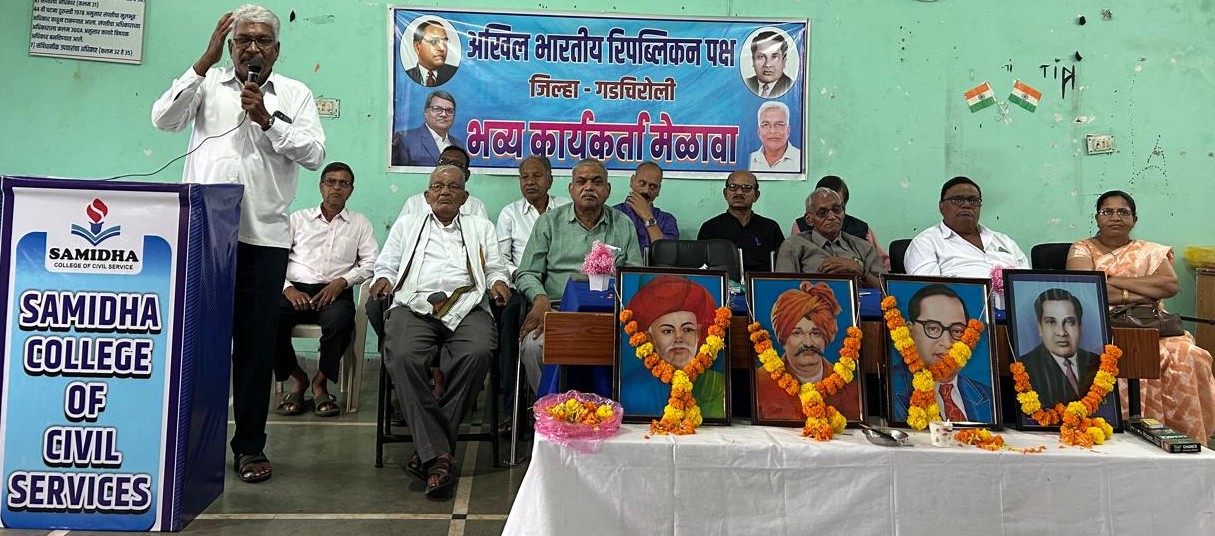 Other distinguished guests also gave information about the glorious history of the Republican movement and stressed the need to accelerate and strengthen this movement. The program was introduced by Prof. Prakash Dudhe, conducted by Pralhad Raipure and vote of thanks was done by Pradeep Bhaisare. Despite heavy rain throughout the day, activists from various parts of the district attended the program in large numbers.