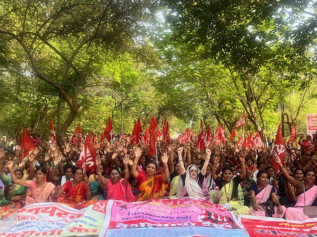 A large number of Anganwadi workers, ASHA workers, state government and Zilla Parishad employees as well as workers of the various political parties participated in this dharna and protested against the four new labour laws enacted by the central government and also other anti-people policies.